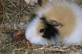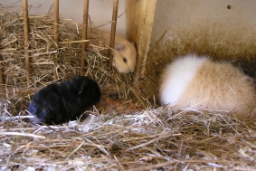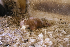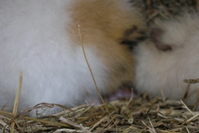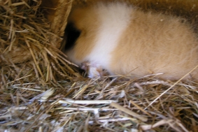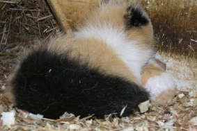 Hier nun mal “Wombles” Rücken und ein Hinterbeinchen und neben der Heuraufe guckt “Whisper” schon neugierig nach ihrem Bruder!