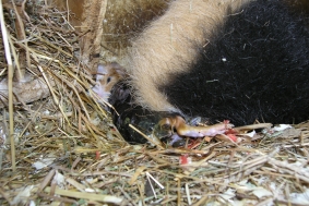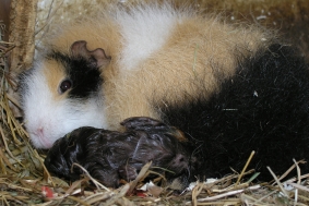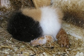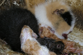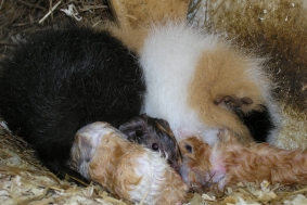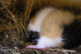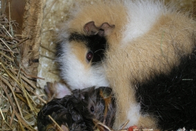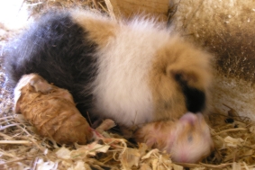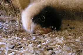 Hier ist noch mal die kleine “Whisper” unter der Mama zu sehen, die auch noch mal abgeleckt wird. “Wish” ist auch schon wieder unter der Mama verschwunden.
