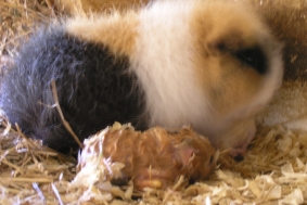 ... und aufgefressen. Sie enthält wichtige Vitamine ect., die die Mutter nach der Geburt gut gebrauchen kann. Außerdem wird so auch der Geburtsplatz sauber gehalten, um mögliche Feinde nicht auf eine Geburt hinzuweisen.