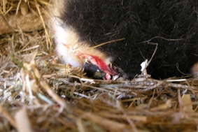 Hier wurde er von Mama schon vorgeholt und sie hat angefangen, den Kopf freizulegen, damit er atmen kann.