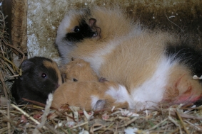 Aber dann sofort wieder ganz pflichtbewußt zurück zu den Baby´s, damit sie weiter geputzt werden können. Im Vordergrund ist die kleine “Weelia” zu sehen, weiter hinten guckt “Wish” unter Mama´s Kopf hervor.
