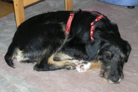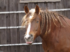 Ronja ist am 04.05.2001 geboren und ein Dunkelfuchs mit 3 weißen Beinen und einer schmalen Blesse. Bisher war sie Zuchtstute, da sie eine sehr gute Punktierung hatte und hat auch sehr gut punktierte Fohlen zur Welt gebracht. Auch ist sie 1 und 2 spännig gefahren (was wir noch lernen müssen) und im englischen Stil freizeit geritten.
