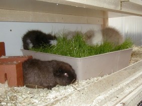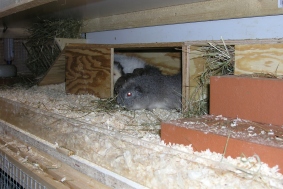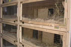 Hier werden dann die Verpaarungen stattfinden und eine Bock-WG einziehen (wenn Jungböckchen zu erziehen sind), sodaß die großen Etagen für die Mädels bleiben können. Auf dem Foto könnt ihr schon mal die ersten bezogenen Etagen sehen.