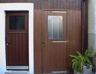 Die rechte Türe gehört zum Stall, die linke zur Garage.